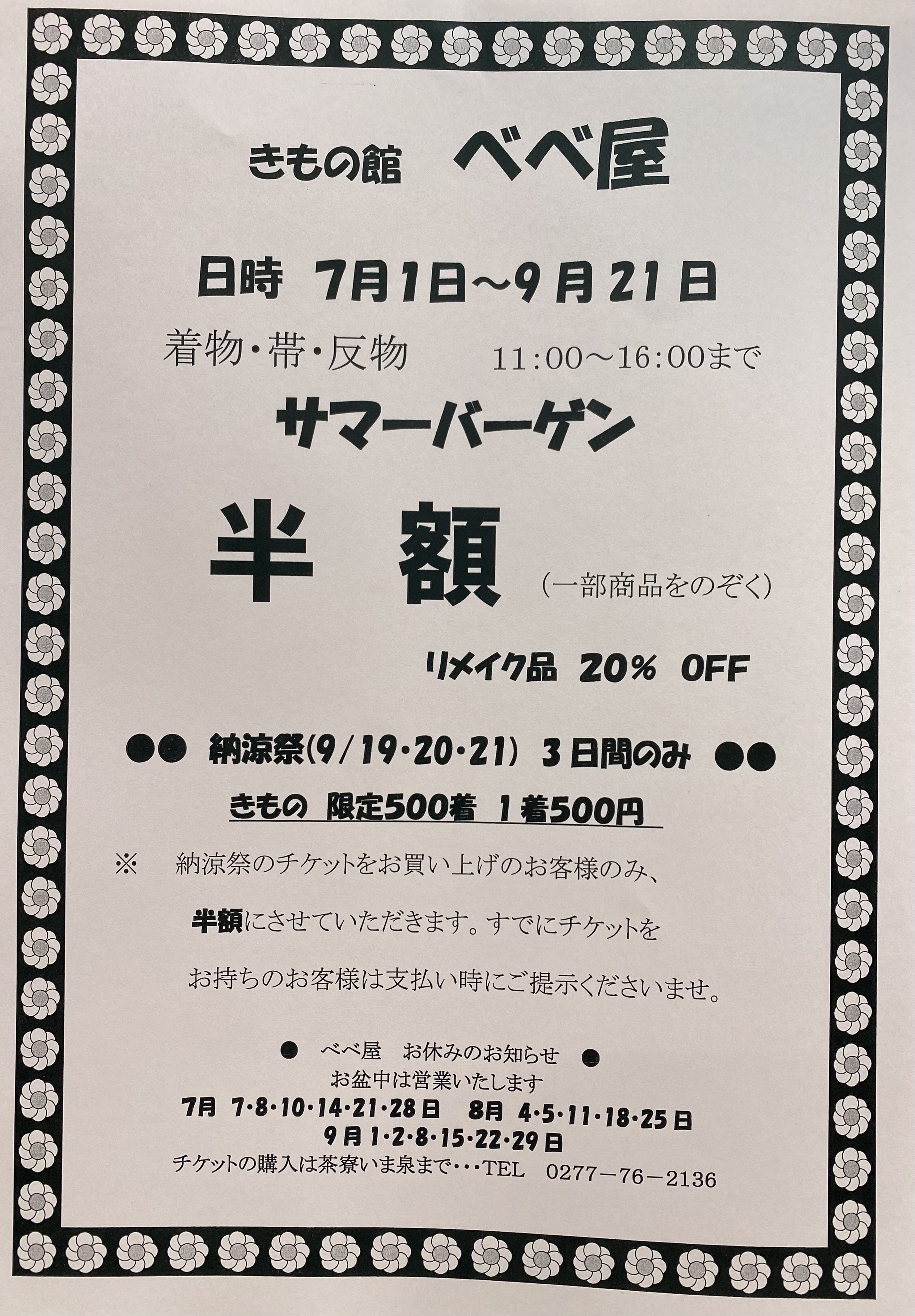 お休みのお知らせ